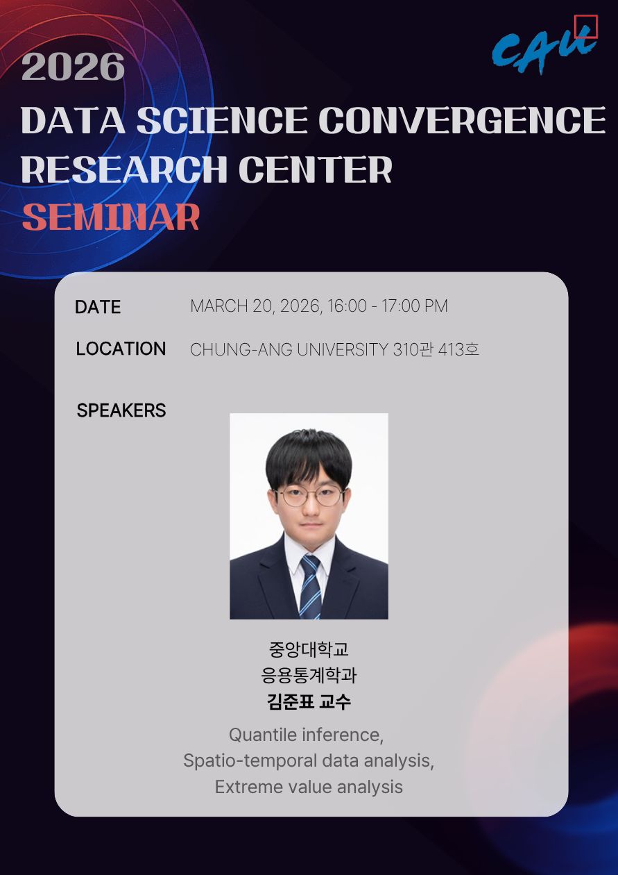 중앙대학교 데이터사이언스융합연구소에서 2026년 3월 20일 Seminar를 개최합니다.